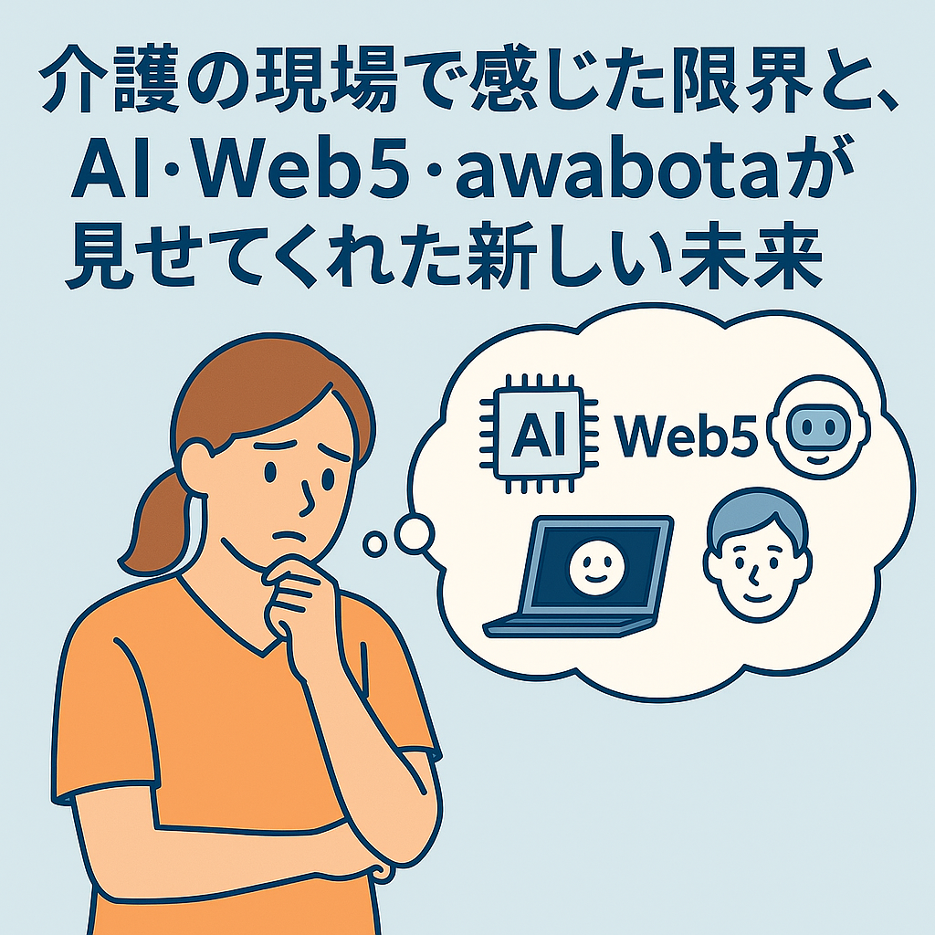 この記事では、私が感じてきた介護のリアルな悩みと、そこから見えた AIやWeb5、そしてawabotaと出会って感じた新しい未来 について書いていきます。